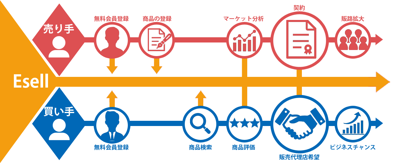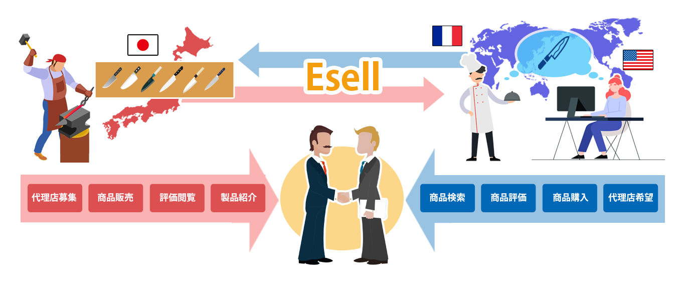 Esselは売り手と買い手とのマッチング、売買に関する様々なサポートを提供するプラットフォームであるだけでなく、さらなる海外進出を狙う日本の個人・法人と、海外にて代理店として商品を販売したいという企業とのマッチングの場でもあります。